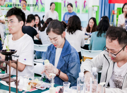 月餅飛花令環節,大家揉面團、搟面皮、選餡料、包餡料、定型忙的不亦樂乎,體驗制作的樂趣。一個個月餅迅速成型,不僅圖案精美,口味多樣,而且皮薄餡多,個個玲瓏別致。