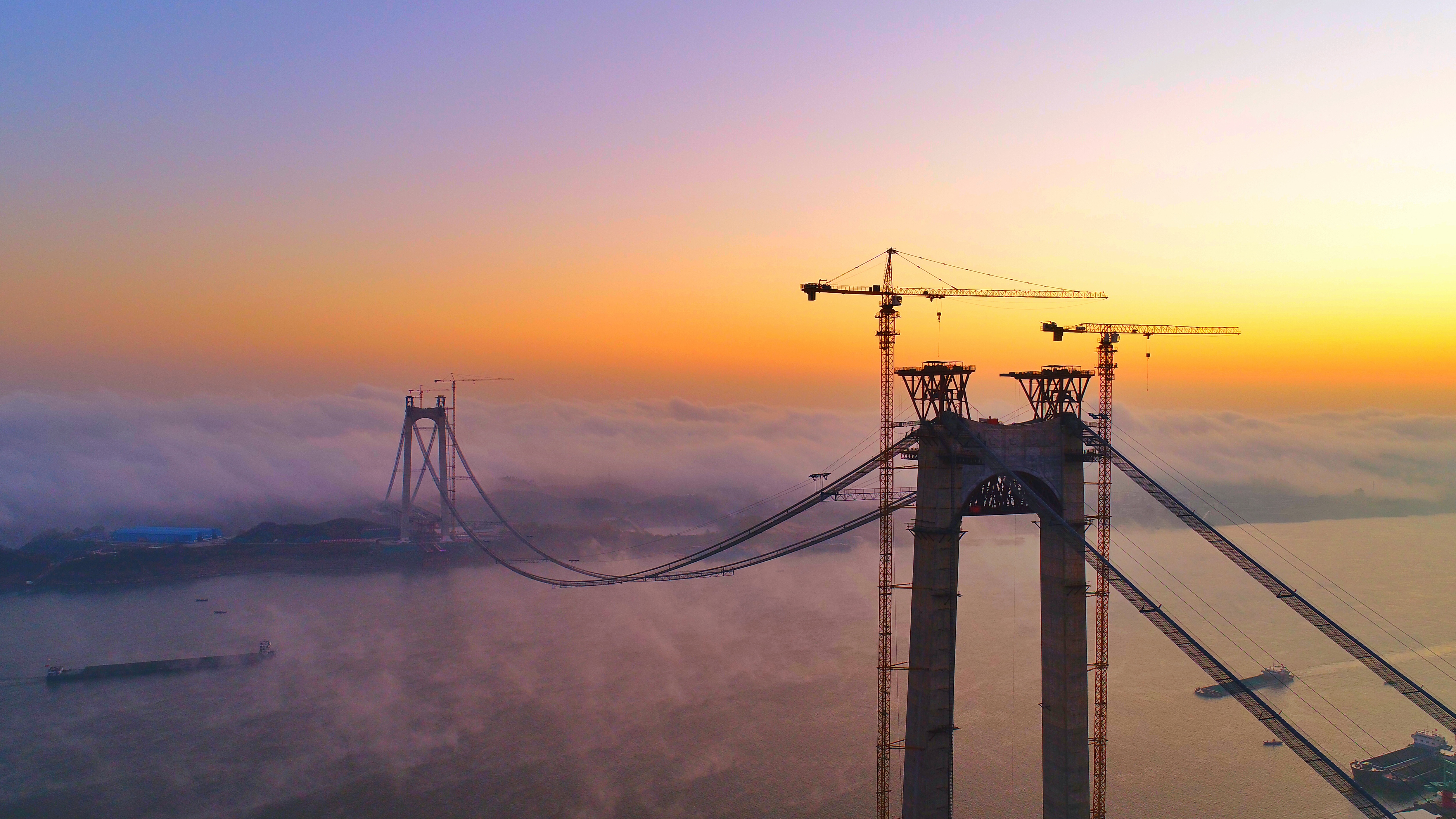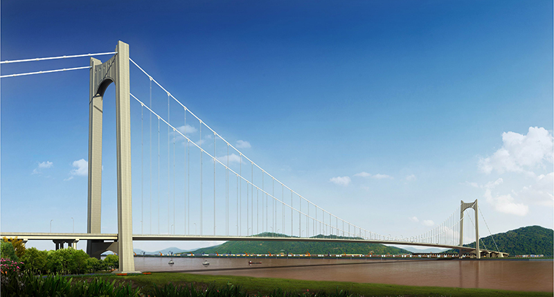 黃石棋盤洲長江公路大橋是武漢城市圈高速公路的重要組成部分,該項目起點位于陽新縣太子鎮(zhèn)樟樹灣村,順接擬建的黃咸高速公路大冶至陽新段,穿過規(guī)劃棋盤洲港區(qū)后跨越長江進入黃岡市蘄春縣境內,在韓家灣與G50滬渝高速全互通相交,終點接滬渝高速。路線全長22.237km,黃石側接線14.247km,長江大橋3.728km,黃岡側接線4.262km。本項目投資估算總金額為39.363億元,建設總工期為48個月。2014年10月,湖北路橋中標棋盤洲長公路大橋建設工程項目,2020年6月5日,大橋實現(xiàn)順利合龍。