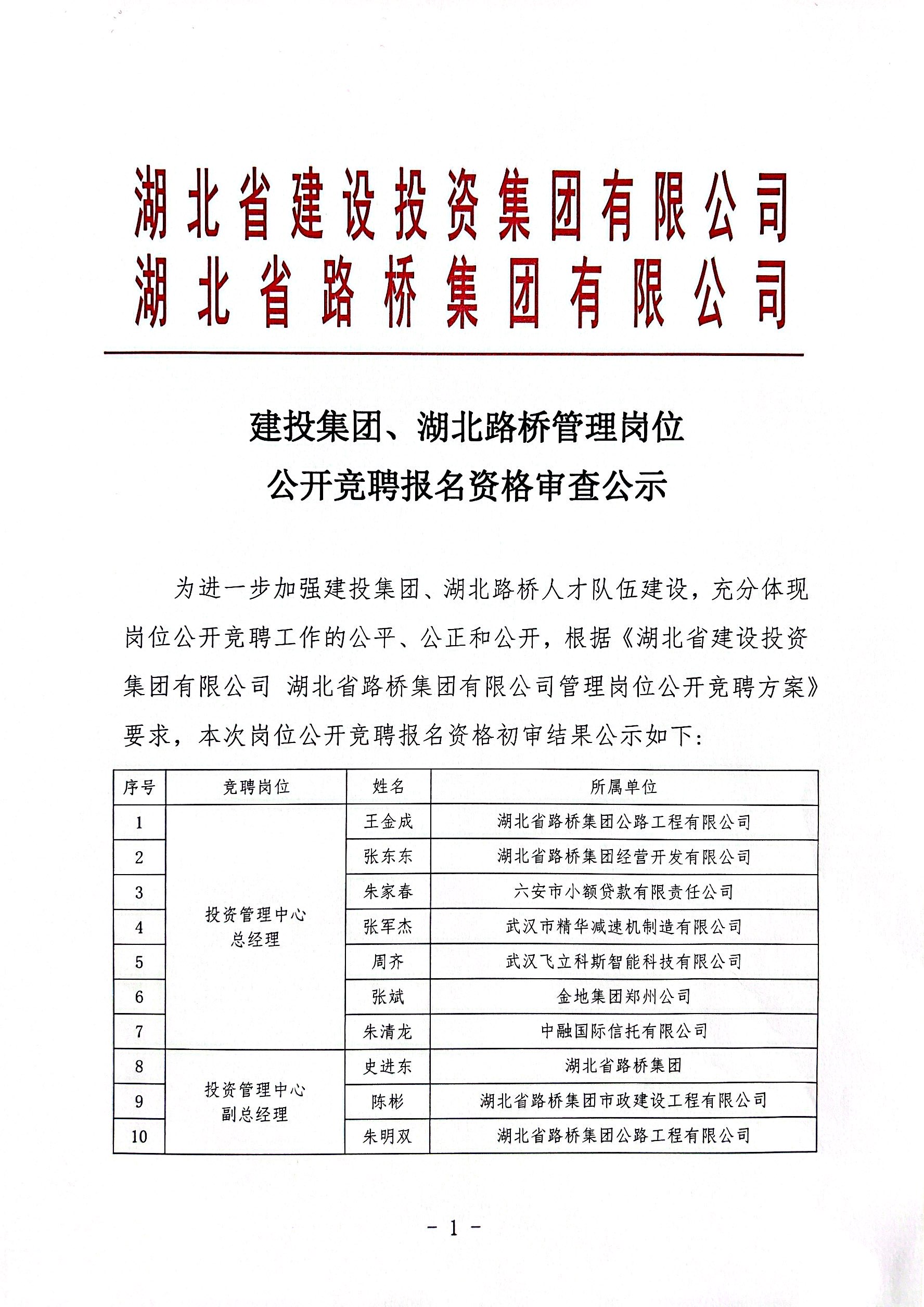 建投集團(tuán)、湖北路橋管理崗位公開競聘報(bào)名資格審查公示