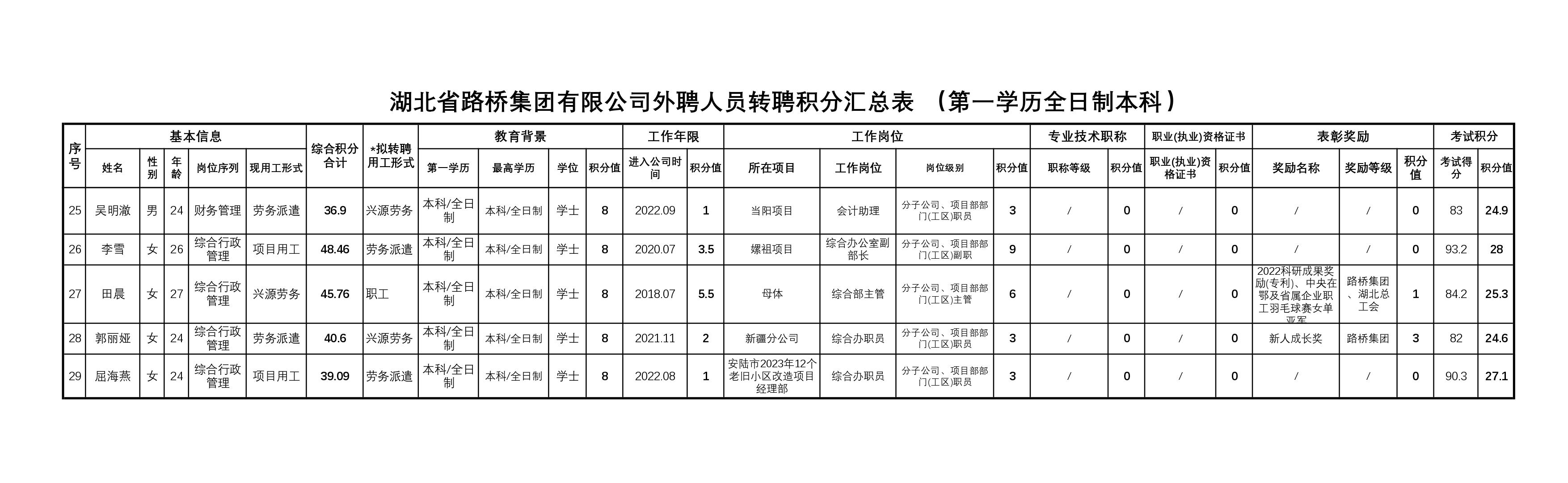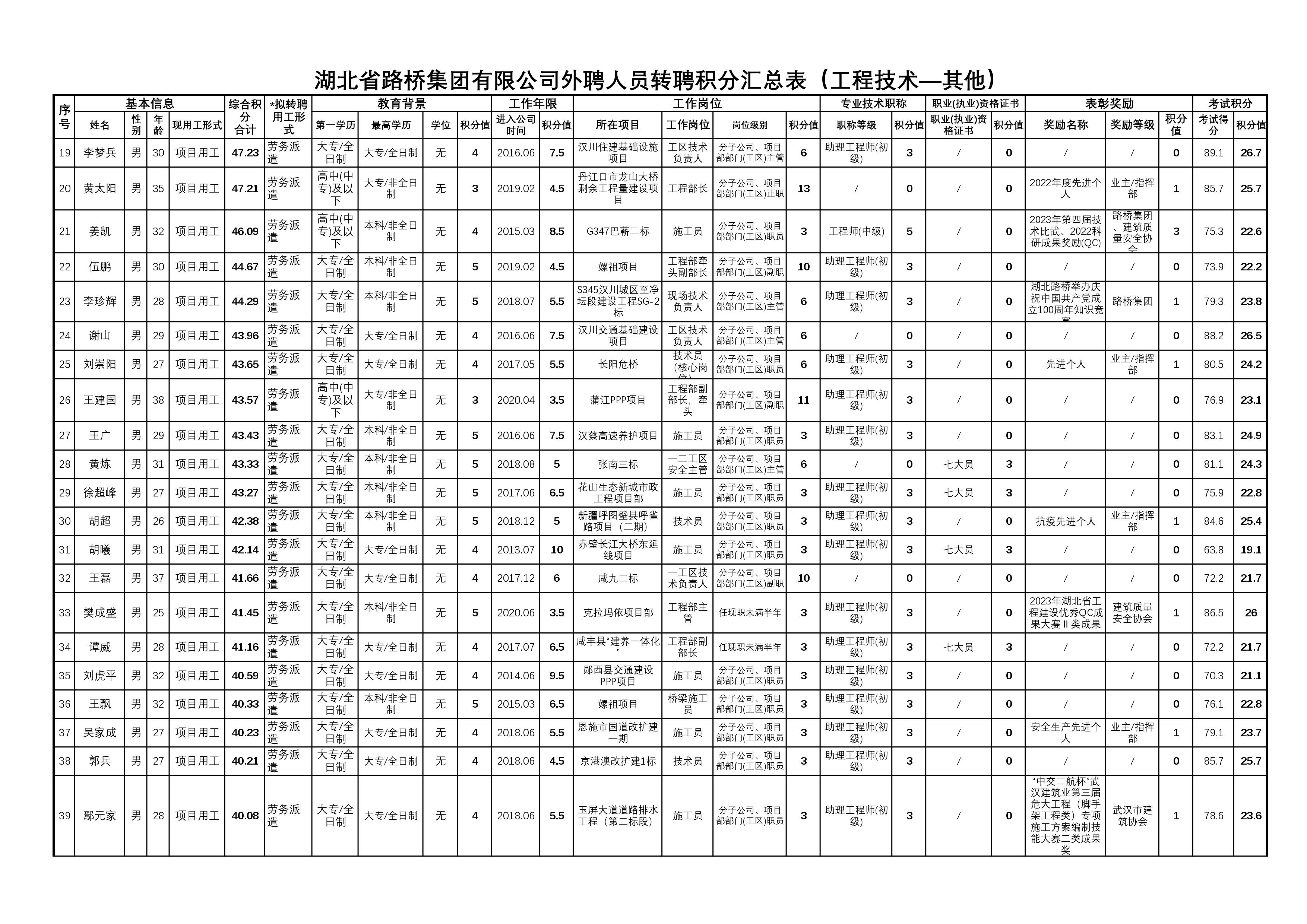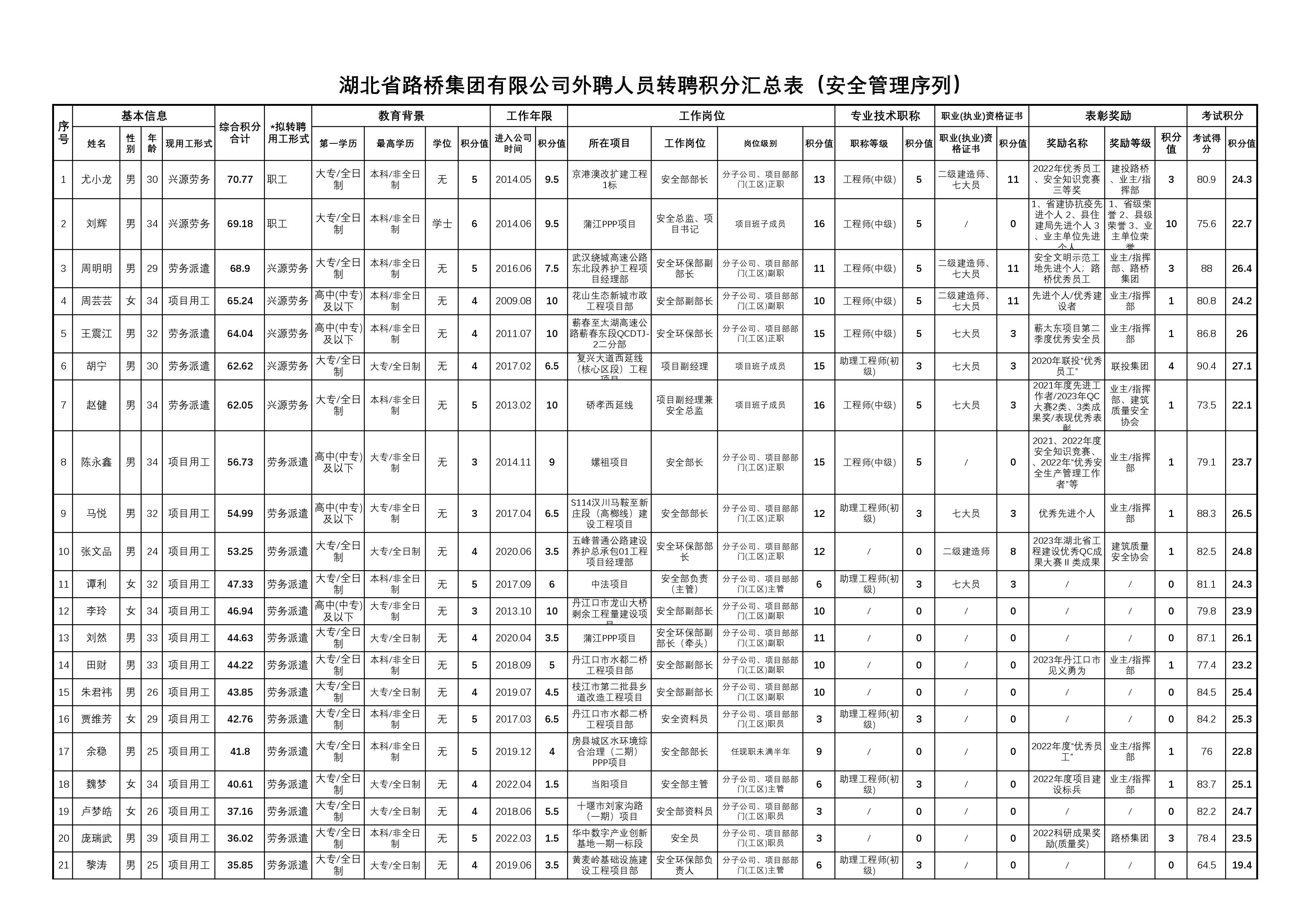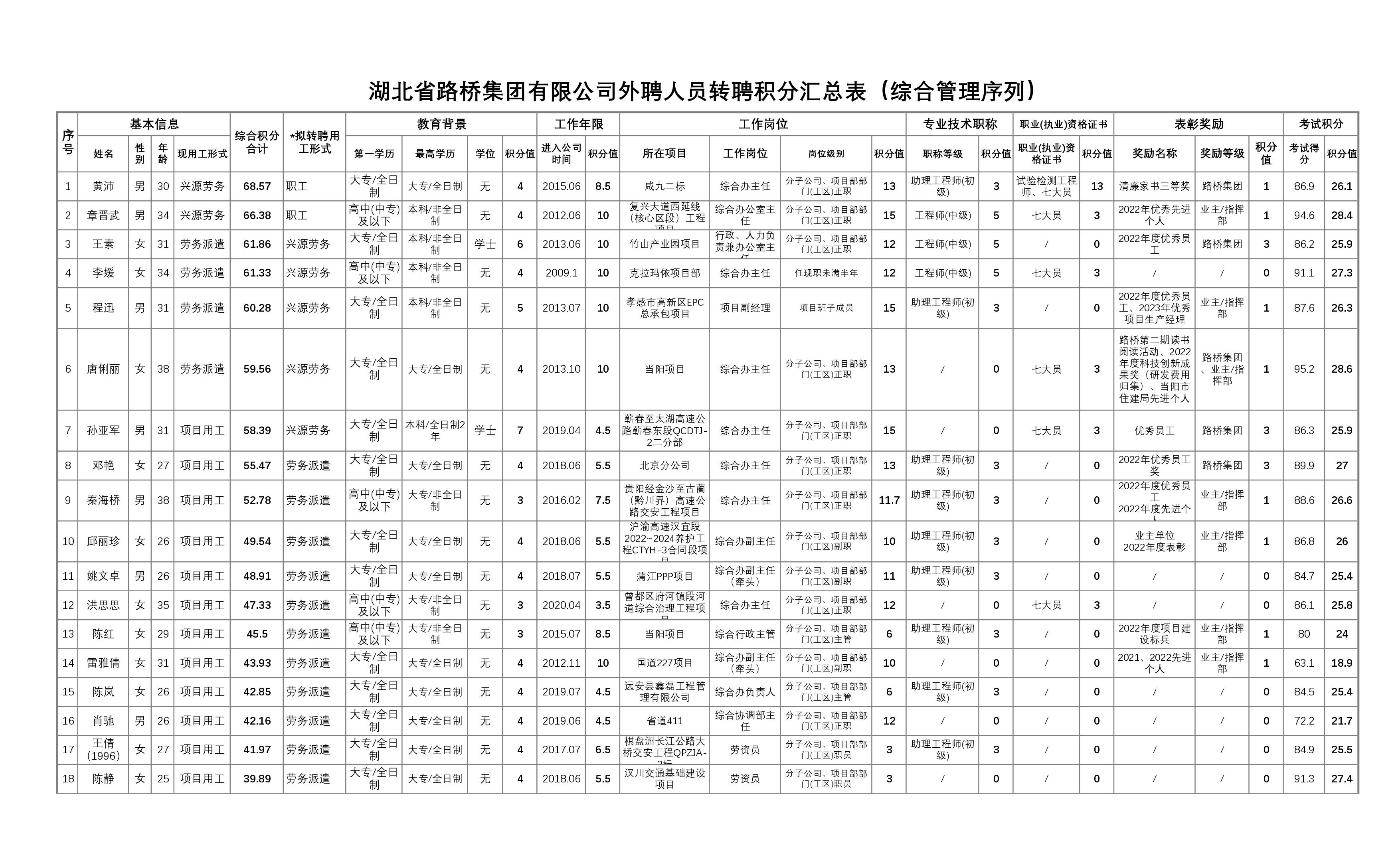 湖北省路橋集團(tuán)有限公司2023年擬轉(zhuǎn)聘人員公示