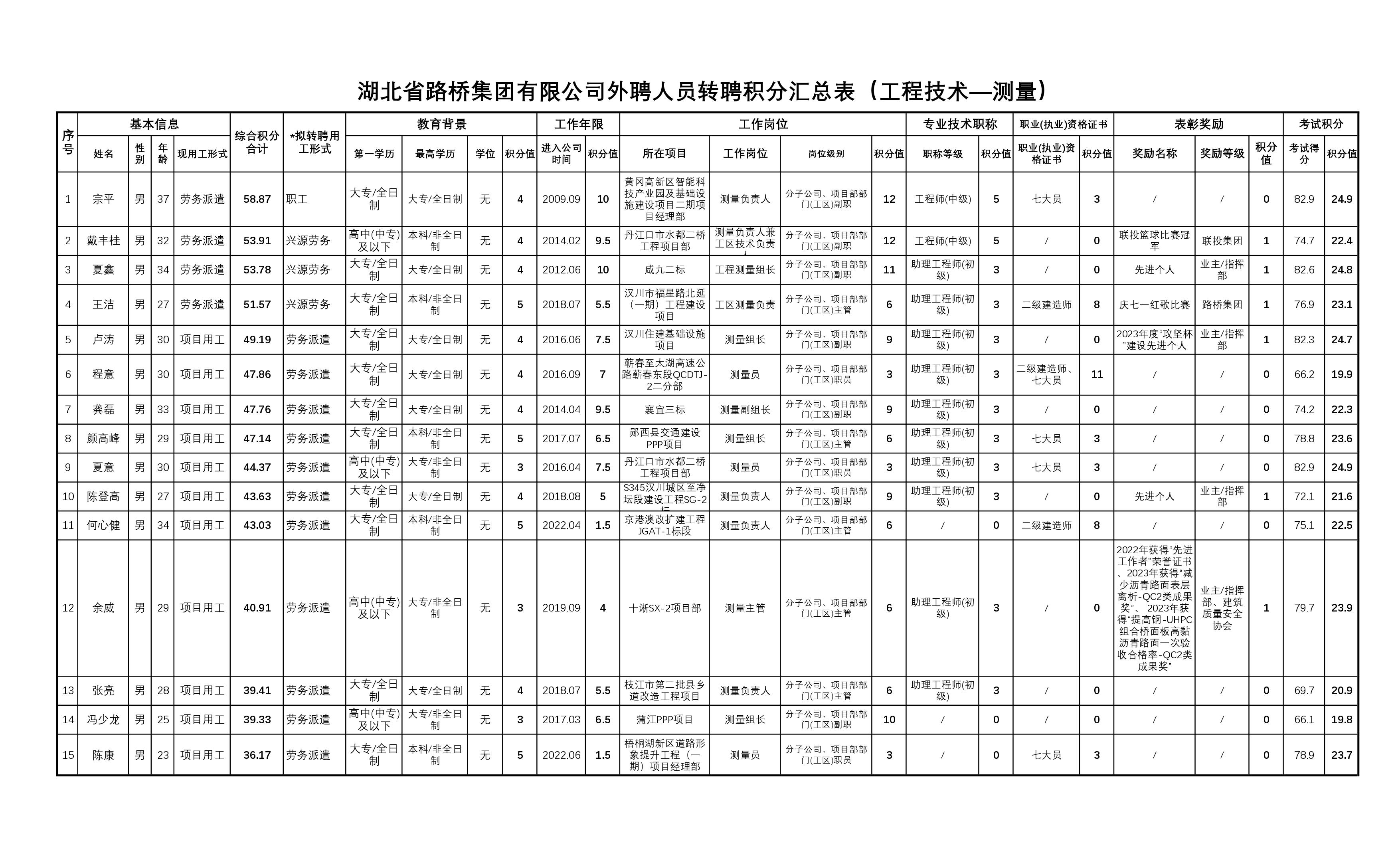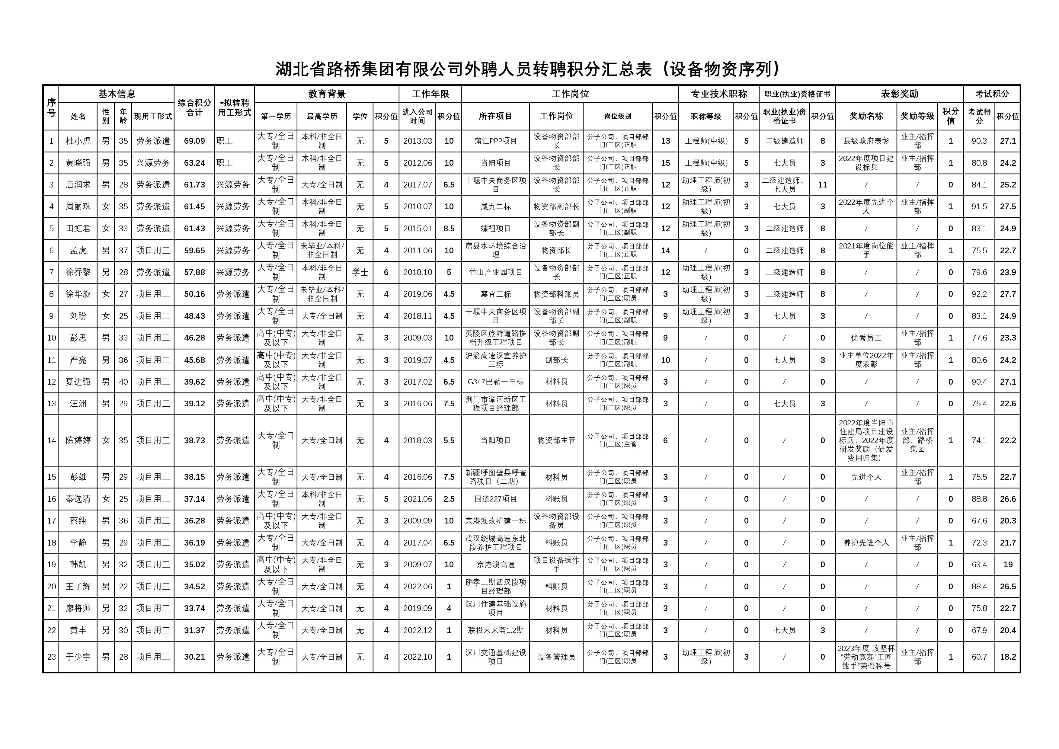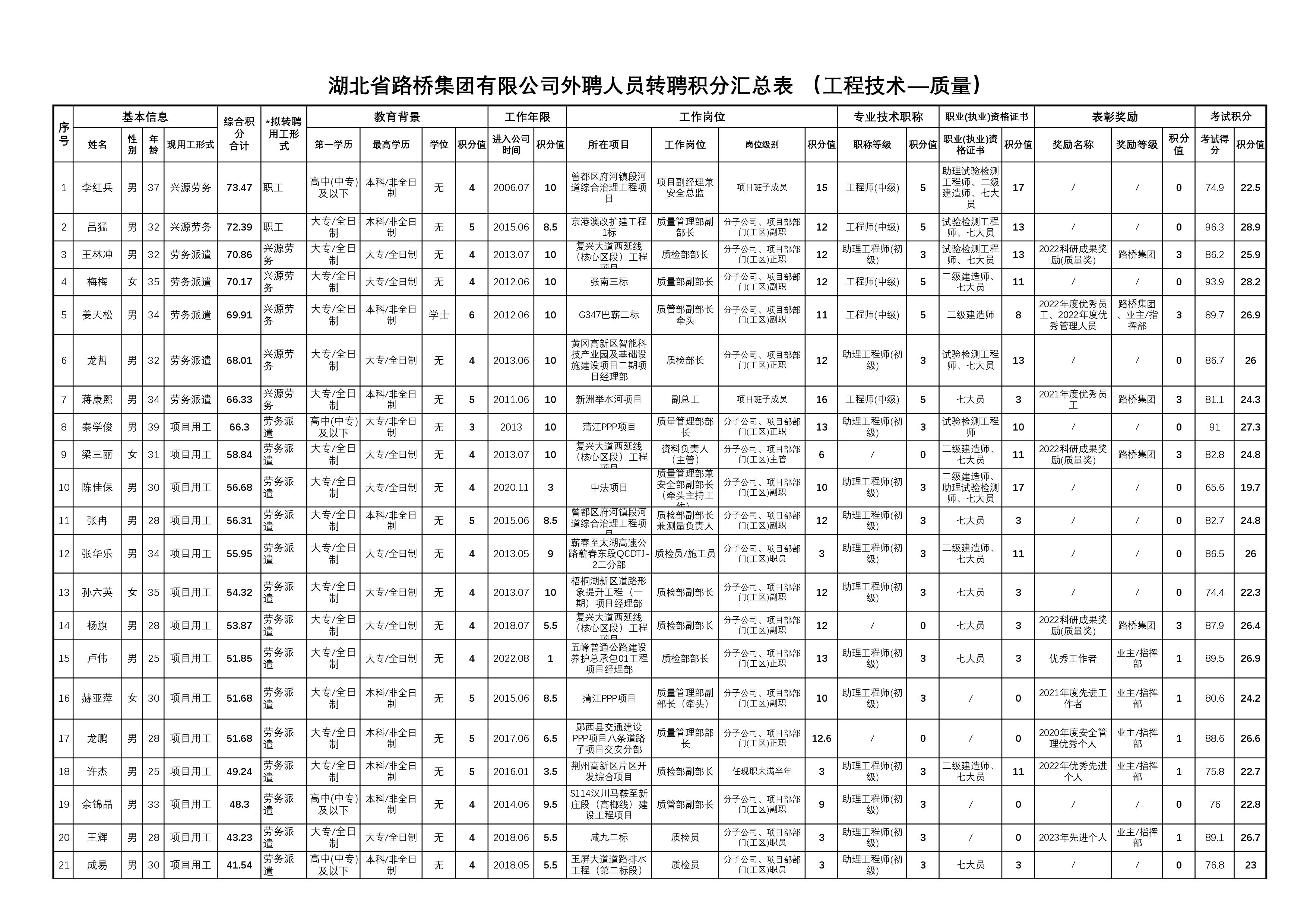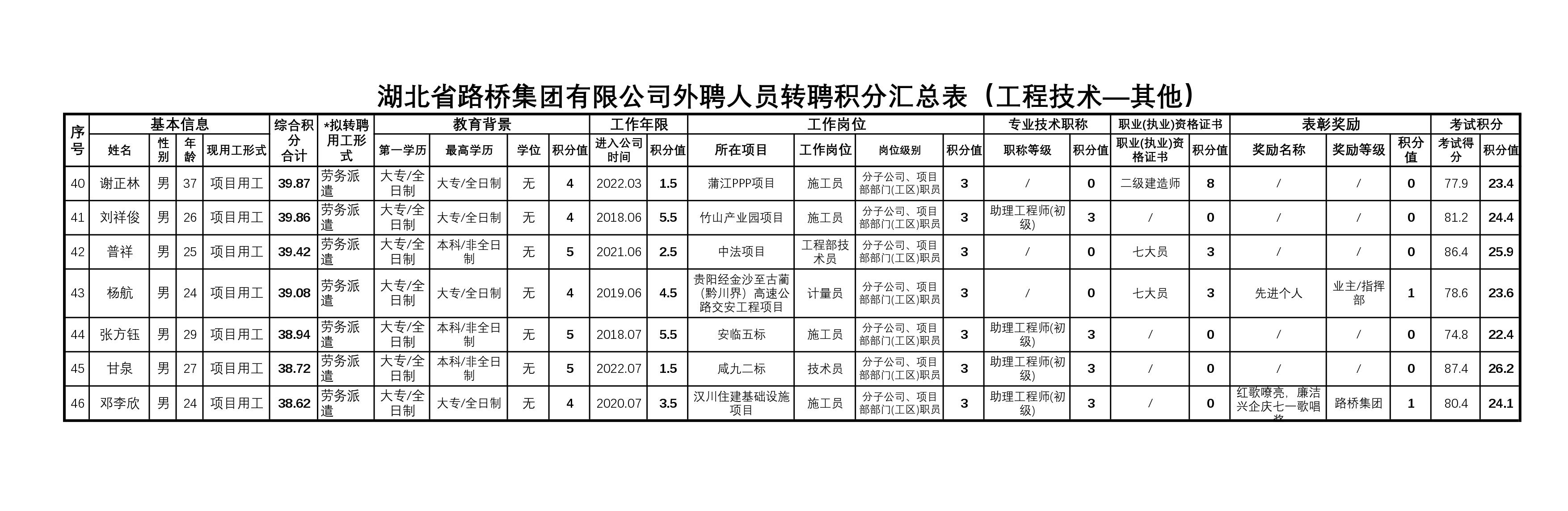 湖北省路橋集團(tuán)有限公司2023年擬轉(zhuǎn)聘人員公示