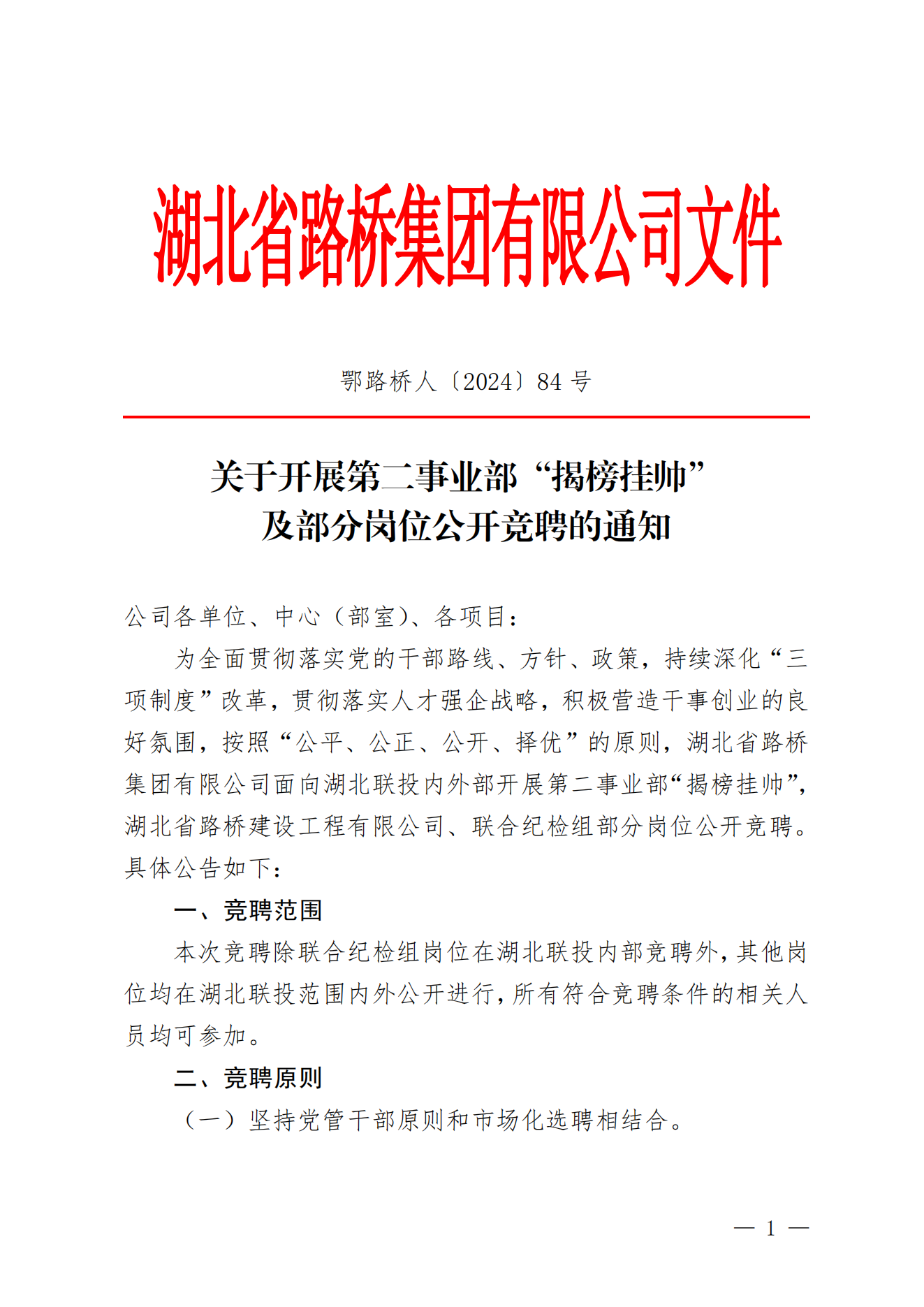 人才強企丨湖北省路橋集團有限公司下屬橋隧公司經營層團隊組閣競聘考察對象的公告