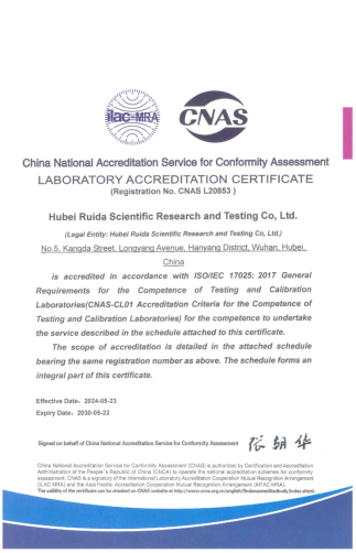 發布時間:2024-06-03 瀏覽次數: 作者:?萬亞琴 文章來源:瑞達檢測公司