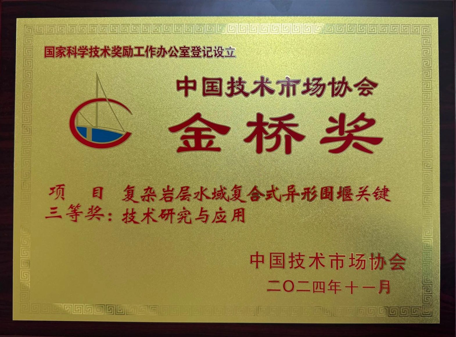 近日,第十二屆中國技術(shù)市場協(xié)會金橋獎在北京召開獎勵表彰大會,湖北路橋主持研究復(fù)雜巖層水域復(fù)合式異形圍堰關(guān)鍵技術(shù)研究與應(yīng)用”在近千個項目中脫穎而出,榮獲“金橋獎”項目獎三等獎。這是公司連續(xù)兩屆斬獲該獎項,再次證明了湖北路橋在科技創(chuàng)新成果轉(zhuǎn)化和技術(shù)推廣應(yīng)用領(lǐng)域的卓越實(shí)力。