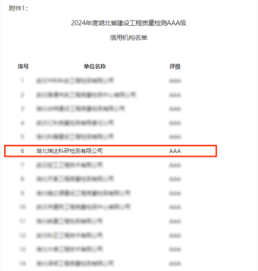 贏戰開門紅丨喜報!瑞達科研檢測公司榮獲湖北省建設工程質量檢測最高級信用評級