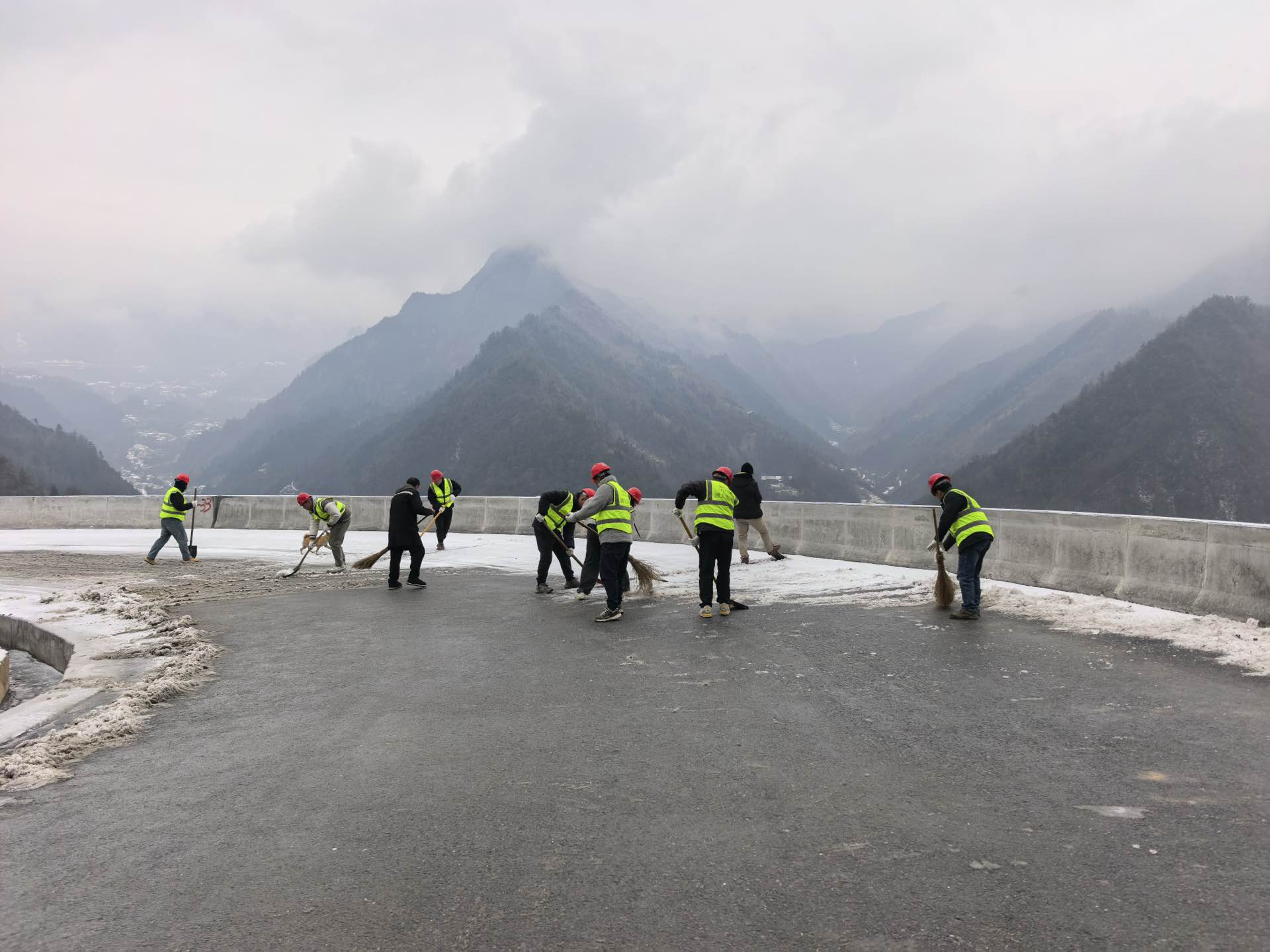 面對強降雪導致的交通公路路面結冰打滑,以及建筑工地施工通道、運輸要道積雪結冰的雙重隱患,五峰建養01包項目部迅速啟動冰雪應急預案,組建專業搶險隊伍,提前儲備了足量環保型融雪鹽、鐵鍬等應急物資,明確“先公路主干道、后工地關鍵區”作業邏輯,搶險隊伍兵分兩路展開作業:公路組駕駛皮卡車沿責任路段勻速行駛,重點對橋梁、彎道、坡道等易結冰部位精準撒布融雪鹽;工地組采用“機械+人工”的協同模式,由撒鹽車全面覆蓋主干道,作業人員則手持工具對施工便道、材料堆場、腳手架通道等機械作業死角進行補撒,同時嚴格控制融雪鹽用量,避免設備受到腐蝕,全體搶險人員實行24小時輪班巡查制度,每2小時檢測一次路面防滑情況,累計撒布融雪鹽3噸,清理積雪結冰路面6公里,確保了周邊公路全線暢通和工地施工通道無結冰隱患。