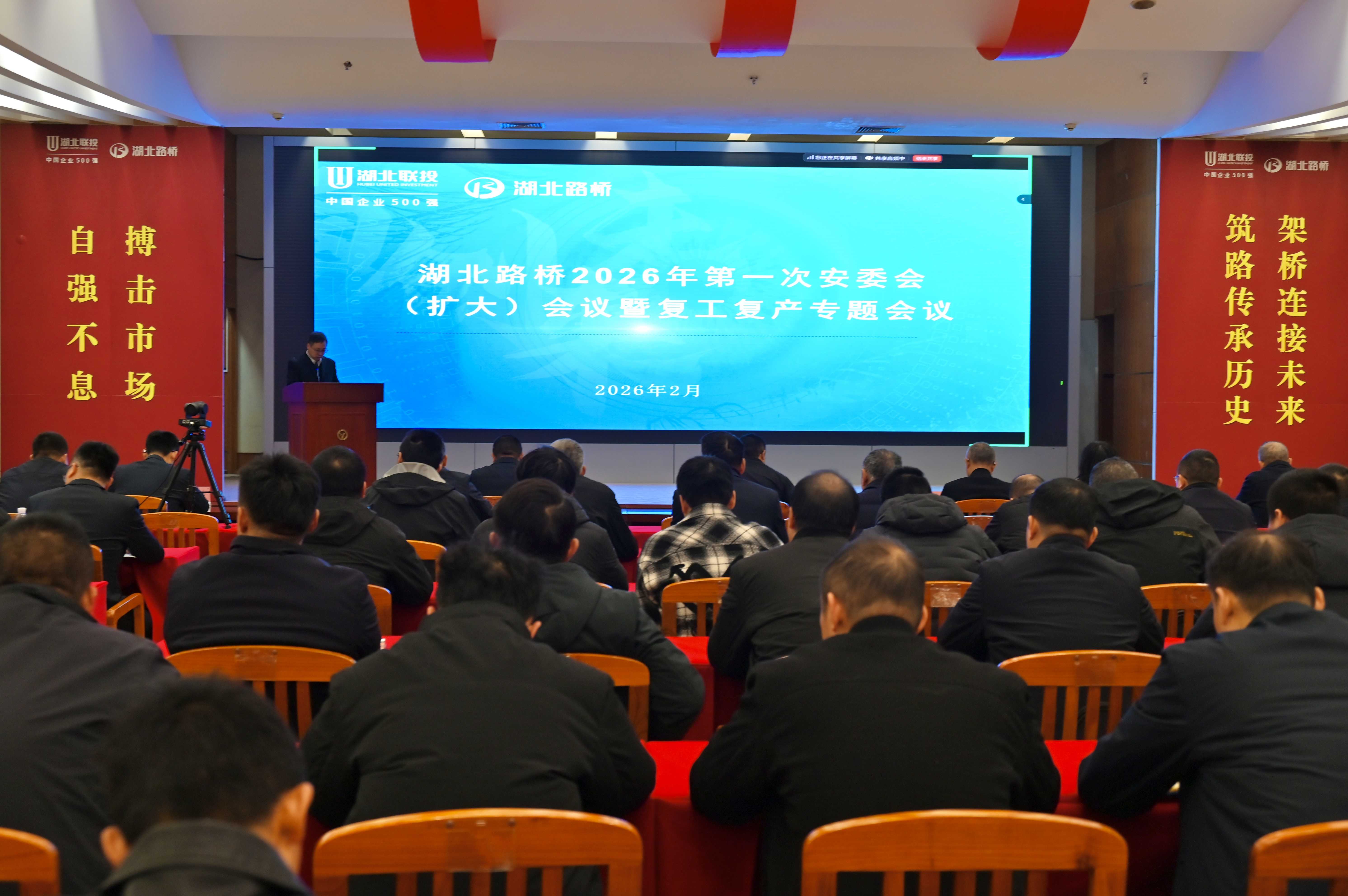 2月26日,湖北路橋召開2026年第一次安委會(擴大)會議暨復工復產安全生產專題會議。會議深入貫徹湖北聯投2026年一季度“開門紅、開門好”工作會議精神,動員全體干部職工收心歸位、統一思想、壓實責任,抓實復工復產安全生產工作,為公司年度安全發展筑牢基礎。公司黨委書記、董事長潘新平出席會議并講話,黨委副書記、總經理鄭杰作復工復產動員并強調安全工作,黨委委員、副總經理寧繼康分析當前安全生產形勢,部署2026年度安全環保重點工作及節后復工復產具體任務。